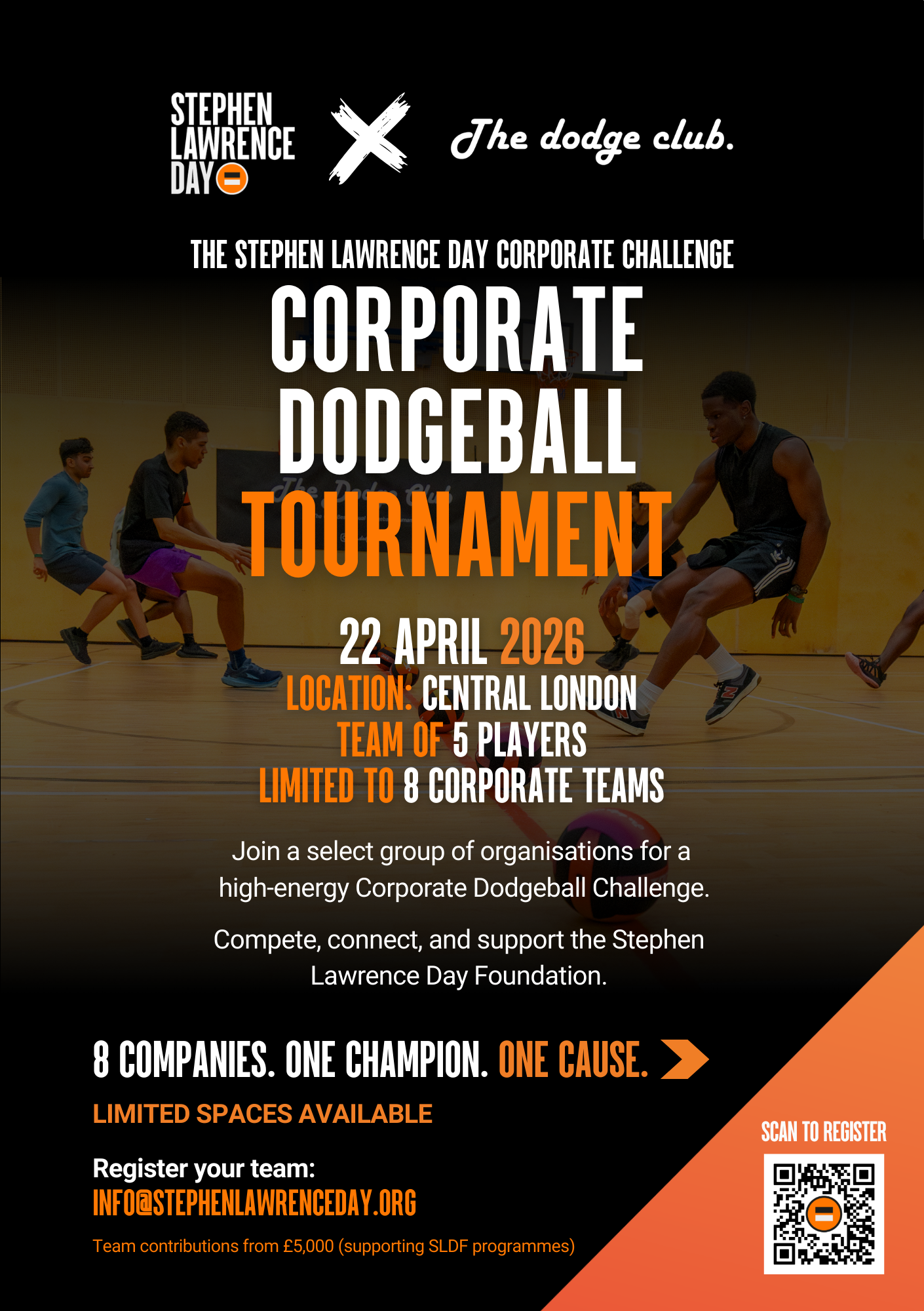 To mark Stephen Lawrence Day, we are inviting a select number of organisations to take part in a Corporate Dodgeball Challenge, in partnership with The Dodge Club.